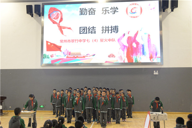 而在开学以来,在七年级的少先队员中已经有一批优秀的队员们,他们勤奋好学,他们积极进取,他们敢为人先,他们用优异的表现脱颖而出,成为少先队员们学习的榜样。教导处单主任和年级组长周新美老师分别宣读读校杰出少先队员、校优秀少先队员名单并为他们颁奖。随后,秉着争先创优、开拓创新的理念,七年级十个中队展示了他们不一样的风采,在这样优秀、这样友爱、这样进取的中队集体里,同学们一定能勤奋学习,快乐生活,全面发展。
