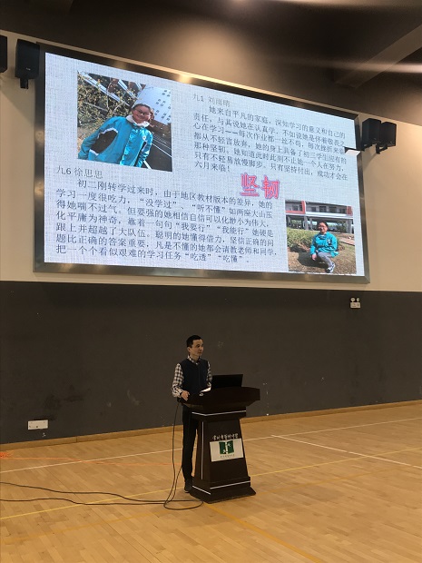 年级组长朱老师悉心罗列了英语口语、体育等各项考试倒计时间,告知同学们今年的中考形势:高中扩招为更多学生带来了福音;同时竞争也会十分激烈,分数高选择面才会更大。奋斗的道路上,有这样一群同行人,给予学生们不计较的付出和许多暖心的建议:贲秋萍老师代表全体初三老师发言,她告诉孩子们青春需要搏一搏,拼搏的路上老师是他们最坚强的后盾!九1班学生的爷爷出镜为孩子们打气,他告诉孩子们青春应该是充实的,求学的路上他们是最有力的保障!毕业多年的翠中学长也为大家发来了宝贵的经验介绍视频,他告诉学弟学妹们,紧跟老师的复习步伐,才是最有效地学习方法,目前就读于著名高等学府南开大学的他一下子就吸引了所有学生眼球,埋头前进的路上榜样的力量是无穷的!
