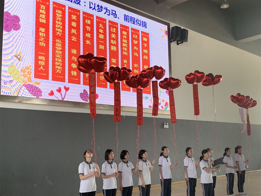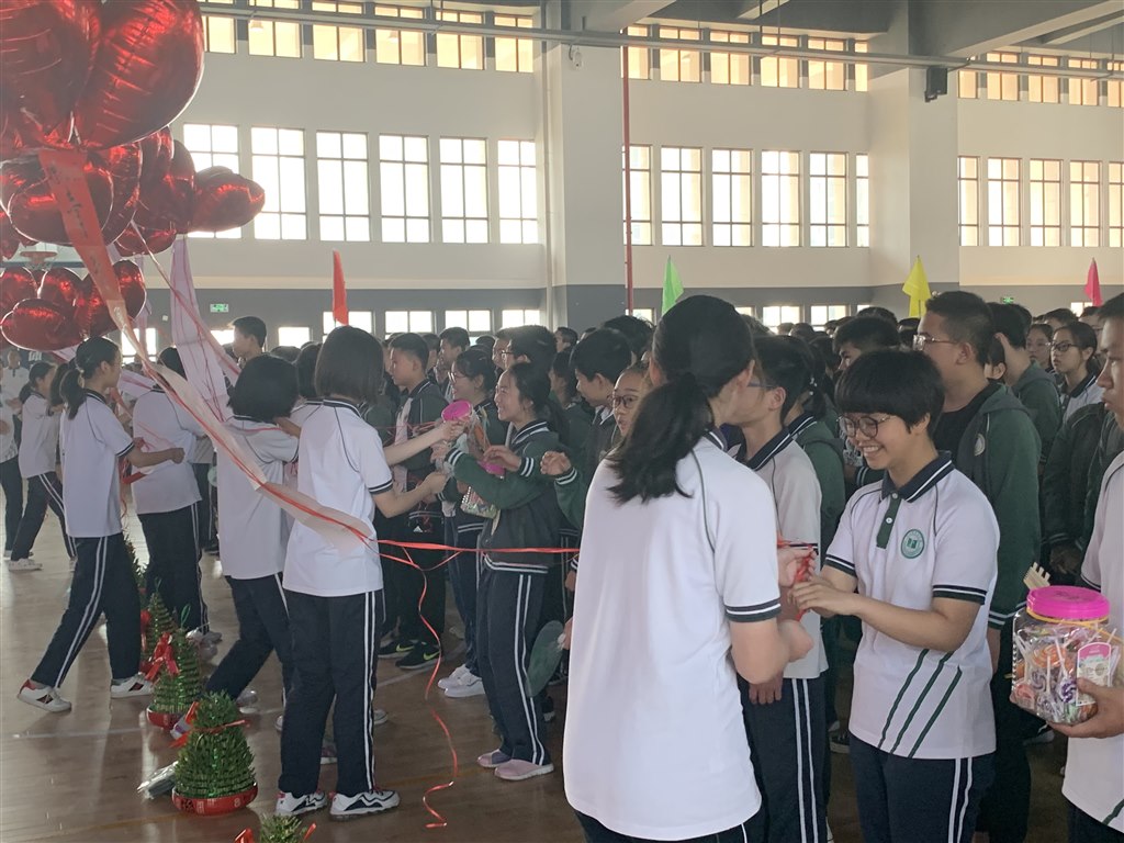 三年磨剑,中考场上试锋芒;金榜题名,翠中学子竞芬芳。2019中考来临之际,翠竹中学全校师生为九年级考生精心准备了祝福三重礼: 第一重礼:温情仪式,暖心大礼 一张张祝福的卡片,一面面飘扬的彩旗,一段段激昂的音乐,一张张真诚的笑脸,在七八年级的夹道欢迎下,九年级学子踏着红毯,迈着自信的脚步走来。大屏幕上回顾九年级学子三年成长的点滴,9位初三班主任暖暖的画外音,学弟学妹们热情洋溢的加油,来自不同高中、高职校的已毕业的翠中学子们,发出热情的呼唤!温暖与感动涌上心头……这是周一学校为九年级学子举办的祝福仪式。 八年级师生还专门赠上了暖心大礼:一把把定制的手扇,一颗颗甜蜜的棒棒糖,一把把手绘吉他,一幅幅书法气球,热情似火的掌声、激情澎湃的呐喊,凝聚了全体翠中人对九年级学子的真诚祝福与期待。 第二重礼:歌曲快闪,奔跑追梦 周二的中午,静悄悄的校园忽然沸腾起来。随着音乐响起,七八年级迅速集结在楼道中,舞动的气球,七彩的纸飞机,娇艳的鲜花……伴随着音乐的节奏不断摇摆。“我们都是追梦人……”“随风奔跑自由是方向”……稚嫩却嘹亮的歌声,合唱出两首激情澎湃的励志歌曲,燃爆校园,给对楼的九年级学子一份惊喜的同时,更带来了深深的震撼与触动。不少九年级学子留下了激动、感动的泪水,也不自觉地跟着轻声哼唱起来。 第三重礼:心理讲座,舒缓焦虑 周四下午,为了缓解孩子们考前的焦虑,学校特邀请了德安医院的周医生到学校组织讲座,为毕业生缓解紧张情绪,让翠中学子不惧挑战,自我挑战,以更自信从容的心态来面对中考。 情谊真真,祝福深深。愿每一位翠中学子都能带着母校满满的祝福与爱意迈入考场,开启人生的新篇章!