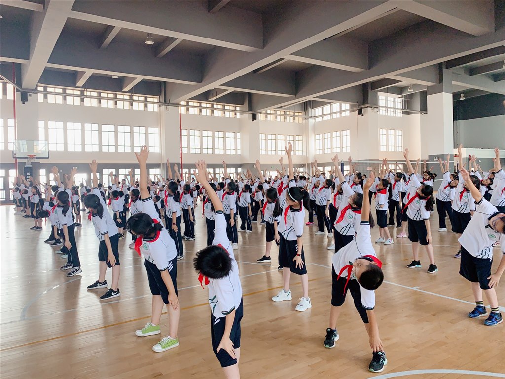 体育馆内的广播操学习仍在继续,老师不厌其烦地分解动作、示范纠正,同学们一次次抬手、申腿,从凝滞到顺畅再到游刃有余,对每一个小动作的打磨都力求完美,展现出翠中学子力求完美的奋进意识。而体育馆外,参加队列训练的同学们相比昨日的生涩亦多了一份圆融,教官们的表情严肃,但眼中的满意遮掩不住。响亮的口号、齐整的动作、严整的纪律,无一不展示着孩子们的努力,即使汗如雨下,即使已然困倦,但经过短暂休息后又能精神饱满地投入练习。