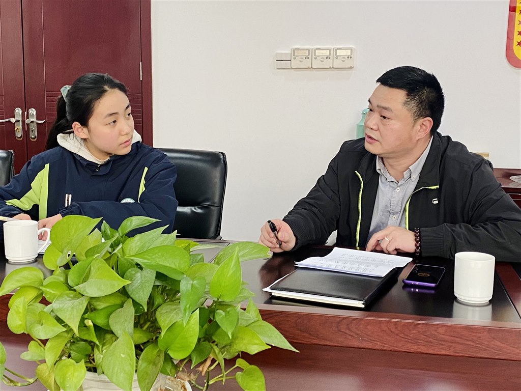 那么接下来就是紧张的采访环节了,胡砚舒和刘奕瑶作为采访小记者,按照同学们事先集体商讨的问题逐一对周主任进行了采访。