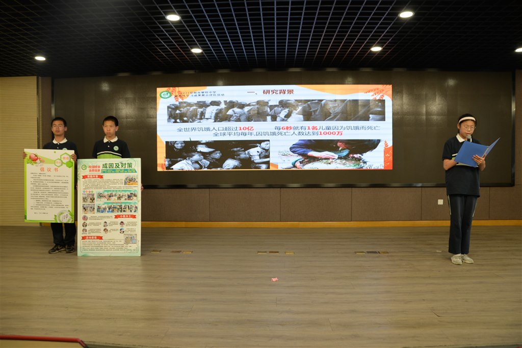 在评比活动现场,各课题小组成员们从课题的研究背景、研究内容、研究价值、研究过程和活动感悟分别展开陈述。710303课题小组带来的《英语趣配音》带来了一段现场英文配音秀,成员们惟妙惟肖的表演将活动推向了高潮;760713课题小组的同学们通过在校午餐的实录和食堂每日产生垃圾的数据,告诉现场的每个人应该从自身做起,从点滴做起,珍惜每一颗粮食;770301课题小组的同学们详细介绍了苏轼这位艺术巨匠的生平事迹,还带领着大家再次领略了这位大文学家的风采。