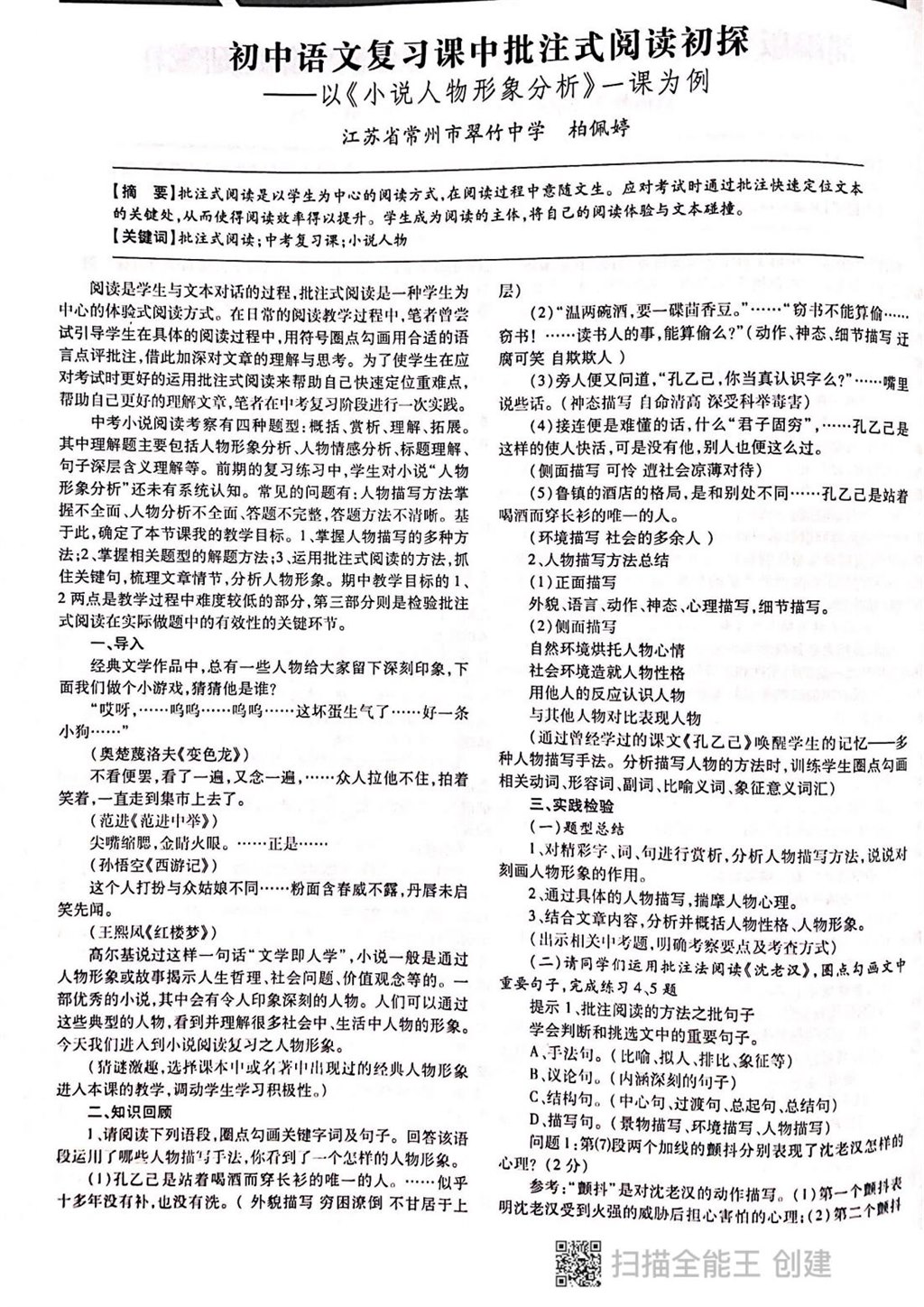 课题论文——柏佩婷《初中语文复习课中批注式阅读初探》