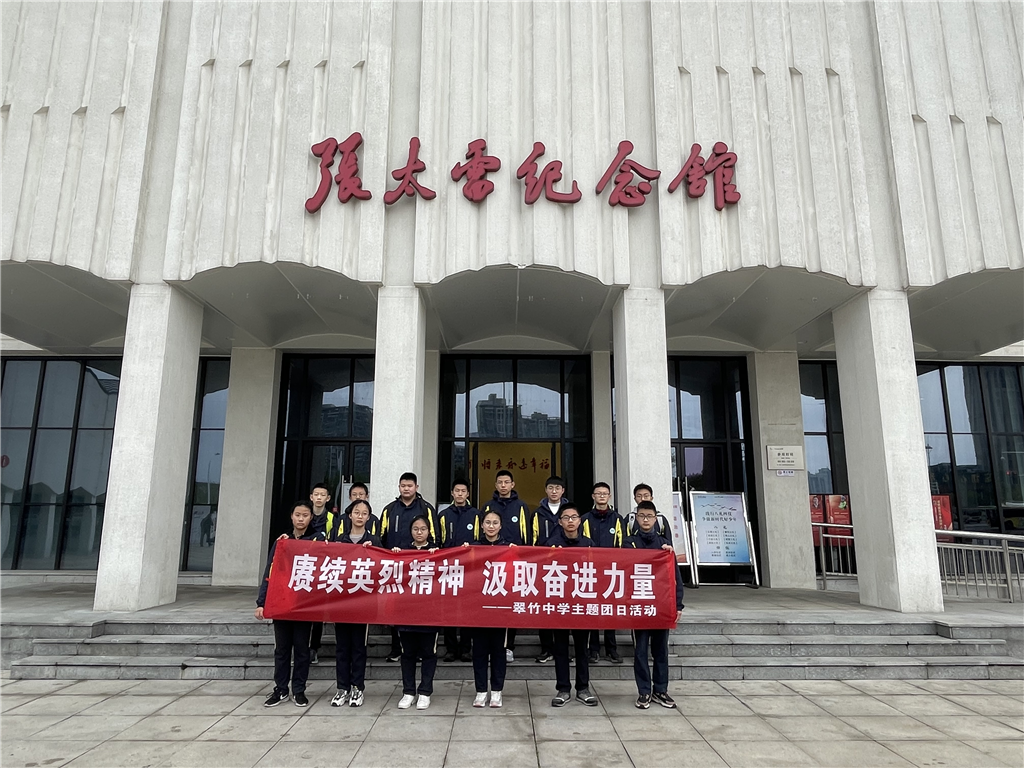 慎终追远怀初心,思时之敬正清明。在致敬英雄、缅怀先辈、寄托哀思的清明时节,为弘扬爱国主义精神,传承革命薪火,引导广大中学生珍惜现在的幸福生活,继承先烈遗志,汇聚昂扬向上的坚定力量,4月5日上午,翠竹中学组织第51期团校学员代表前往张太雷纪念馆,开展“赓续英烈精神,汲取奋进力量”主题团日活动。校团委副书记恽雯主持本次活动。 带着敬仰之心、携着崇敬之情,学员代表先参观了张太雷纪念馆,展厅里呈现的每一幅照片、每一段影像资料,一幕幕场景再现了张太雷同志为共产党革命事业奋斗的光辉历程,每一位学员深切感受到中国共产党的历史担当和奋斗的艰辛,也感受到肩上的重担。优秀学员代表王思豫作表态发言,现场全体学员向为中国共产党的发展壮大,为中国革命的胜利,建立不可磨灭历史功勋的太雷同志深深三鞠躬。 “一寸山河一寸血,一抔热土一抔魂”,像张太雷这样的革命先烈还有许许多多,正是因为有了他们的付出,才有了今天的幸福生活。学员代表在太雷铜像前,面朝鲜艳的团旗进行入团宣誓,铮铮誓言代表青年当奋起的决心。 “一个有希望的民族不能没有英雄,一个有前途的国家必定崇尚英雄。”通过本次学习,学员们在回忆历史、缅怀先烈的过程中,也经受一次心灵的洗礼。同学们将会以革命先烈不畏困难、勇往直前的英勇品质为榜样,不忘初心,砥砺前行,以蓬勃的朝气斗志和崭新的精神面貌为祖国美好的明天贡献自己的青春力量。 学生感悟 张太雷同志是中国共产党早期的重要领导人之一,忠诚的共产主义战士,中国共产主义青年团的创始人之一和青年运动卓越领导人,广州起义的主要领导人。这次清明节,我们怀着崇敬之情寻访了张太雷纪念馆,享受了一次精神盛宴。“谋将来永远幸福”,张太雷惊“雷”八方,以他卓越的才华、高昂的热情和年轻的生命,奉献于中国革命事业,显示出革命者坚定的信念和共产主义理想无比的力量。英雄已逝,英魂长存。他闪光的业绩和崇高的精神像一座丰碑,永远矗立在中国人民心中。 ——八(1)班 顾宸睿 应学校号召,我在今天上午与同学和老师参观了张太雷纪念馆。我从中了解到了张太雷同志的光荣事迹,以及党的发展与成立,学习了红色精神和社会主义精神,通过3D短片设身处地的感受到了在那个年代青年志士们奋发向上的斗志和为国奉献的高尚品德。听了习近平总书记的讲话后,我感受到了我们这个时代中国的强大以及祖国复兴的重任。在进行入团宣誓后,我更坚定了不负青春年华,担当起国家重任的理想。 ——八(5)班 王梵 我参观了张太雷纪念馆,走近了这位伟人,他“谋将来永远幸福”的精神令我感动。英雄已逝,英魂长存。他闪光的业绩和崇高的精神像一座丰碑,永远矗立在人们心中。参观张太雷故居和纪念馆,重缅英雄、铭记历史,革命先烈们勇于牺牲的精神,使我更加珍惜他们为我们争取的权利和生活,他们热爱祖国的精神,激励自己要以最大的努力为祖国的美好而奋斗,我们已经不是懵懂无知的少年,应该意识到并担负起自己肩上的时代使命。 ——八(6)班 赵柯 当我们走进张太雷纪念馆,入目即是纪念馆上方的一千二百一十二条红巾,馆内的一字一句,概括了这位英雄短暂而又辉煌的一生。即使是平铺直叙的语言,却也不难看出张太雷先生这一生的无私与伟大。当我们走出纪念馆,那鲜艳的红巾依然飘荡在我的心间。当我怀着对英雄先烈的崇高敬意与哀思,再来回首当下,我们如今美好的生活离不开张太雷这般无私奉献的革命英雄们的牺牲。所以我们身为入团积极分子,是为共青团的预备役队员,更应该珍视当下,努力学习,努力成就更好的自己,回馈祖国,致敬先烈! ——八(8)班 李可菲 撰稿:恽雯