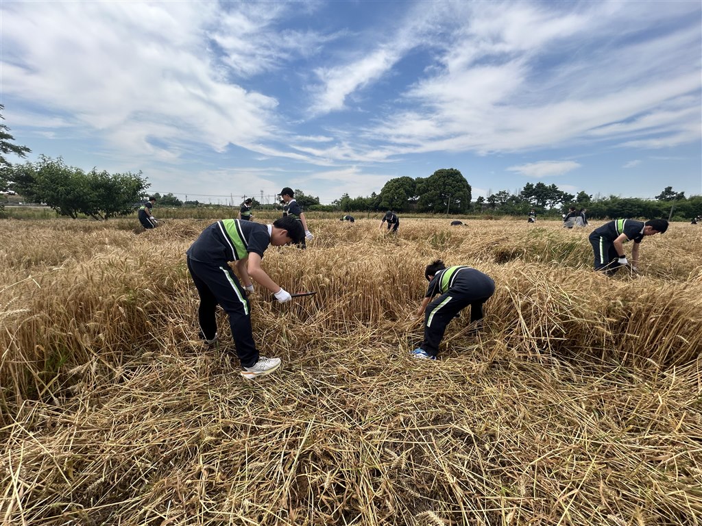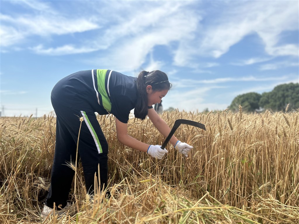 明媚温润的5月,正值小麦丰收的季节。为了亲近农耕文化、感受劳动魅力,5月29日翠竹中学七年级的同学们共同走进校外劳动基地开展“风吹麦浪收割忙 田间劳动促成长”农业主题劳动研学。 风轻轻吹过,麦浪翻滚,一片金黄映入眼帘。一下车,同学们迫不及待地俯下身子,与麦垄亲密接触,抚摸着饱满的麦穗。第一站的知识讲座中,同学们仔细观察作物生长,了解麦子的一生,参观各色各样的农业器械,感受新农业的变化。不仅有有理论学习,第二站的实践活动中,同学们一起育苗春秧,学习麦穗收割。 足蒸暑土气,背灼炎天光。烈日炎炎,但同学们的热情丝毫不减。各班团结协作,你割麦子我捧麦,转眼间,金色的麦子被摞成高高的麦堆。望着自己的劳动成果,闻着泥土的清香和麦子的香醇,大家喜笑颜开。劳动的汗水,在阳光映衬下熠熠生辉! 风吹麦浪,田间成长,与自然亲密,与土地对话—— 附:学生心得 印象最深的是做秧盘,铺二分之一的土在一个盘子上,然后放稻种,浇水,在用土把盘子铺满,全程手都没有停下过,虽然很脏,但是却满满的成就感。春天不仅有播种,也有收获。一起来割麦子啦~老师耐心地向大家展示收割技巧,只见老师手心朝外,左手反握麦秆,右手紧握镰刀,动作流畅而有力。同学们看得津津有味,纷纷跃跃欲试。终于,在老师的带领下,大家兴奋地冲进麦地,开始了收割之旅。弯下腰,弓着身,左手抓住成熟的麦秆,右手握紧镰刀深入麦秆根部,然后用力一拉,只听得“呲啦”一声,麦子就被割下,左手抓住割下的麦秆,轻轻地放在田埂。我们班很有竞争力,每个人都在分工合作着,麦田里就这样出现了一个又一个的“小山”,这些小山也是一个比一个大,我们的心也跟着激动起来,好像必须要比个胜负似的!民以食为天,吃饱饭是人民群众生存发展的最基本需求。所以我们不能铺张浪费,一定要好好珍惜粮食!——七1 冯嘉慧 做上大巴,踏上劳动之路,心中满是兴奋,不知不觉在我们身旁便是那金黄的麦田,那麦子麦子,如同一望无际的金色海洋,起伏波澜,随风摇曳。阳光洒落在麦田之上,金黄的麦穗仿佛沐浴在暖阳的怀抱中,一片宁静与和谐。我与伙伴们认真聆听步骤,拿起镰刀,开工!我们右手拿着镰刀,左手可不闲呐,在那茫茫的麦田中寻觅漂亮的麦子,找到目标,左手反手握住麦子的低端,右手挥舞着镰刀,大概离地5公分的距离只听“啪”一声那麦子便从地里“跑”了出来,我看着那一摞一摞的战利品,心中满是喜悦,“咔嚓”几声,班主任拍下我们劳动的画面,是那么美好。实践体验后,我们又一次了解过去与现在的播种,一条一条履带在田垄里穿梭,不禁感叹。现代化科技走进每个角落。 —七(2)蒋程皓 割麦子劳动实践让我深刻体会到劳动的艰辛与不易。在金黄的麦田里,我手持镰刀,弯着腰,一次次挥动,汗水浸湿了衣衫,但看到一片片倒下的麦子,内心充满了满足和喜悦。这次实践让我更加珍惜粮食,每一粒都凝聚着农民伯伯的辛勤付出。同时,我也明白了劳动的价值和意义,它不仅是为了生活,更是为了实现自我,提升自我。此外,我还感悟到团结精神的重要性。在割麦子的过程中,同学们互相帮助,共同进步,这种团队精神让我深受感动和鼓舞!总之,这次割麦子劳动实践是一次难忘的经历,它让我更加懂得珍惜和感恩,也让我更加坚定了努力奋斗的信念。我相信,只要我们肯付出努力,就一定能够收获满满的成果和喜悦!——七3班 郭雨嘉 田间的麦熟了,风吹,金涛滚滚,悠悠的麦香飘进我的心田。今天我们来到了专业的农业基地,开启了我们的“麦稻之旅”。首先,我们来到了麦田上,眼前是大片金灿灿的麦田。听完老师讲解如何割麦后,我们便迫不及待地拿起镰刀开始了。左手反手抓住一把麦,右手拿着镰刀放在麦秆上,三五公分的样子,轻轻一割,这把麦子就被我们制服了。时间不知不觉的过去,望着那一堆堆麦子,虽然过程中很热很累,但我们却感到了“面朝黄土背朝天”的辛苦,也对让我们对“谁知盘中餐,粒粒皆辛苦”有了更加深刻的理解,更让我们体会到了用自己的劳动收获喜悦之感。接着,我们来到了室内,通过“玩中学,学中玩”的方法,学习了五谷的内容,水稻与小麦的区别。期间,我们还去参观了有关农业的机器,使用这些农业机器可以让我们更省时省力。我们还亲眼看见了使用机器与人力的差别。大家浩浩荡荡,80多号人割了一个多小时的麦子,机器两三分钟就干完了,让我们不禁感叹,人力和机器相比真是天差地别。最后,我们还去制作了水稻苗,望着那一盘盘的成果,自豪感与成就感满布心间。这次的“麦稻之旅”告一段落,但麦香依旧萦绕心田……——七4班 王欣妍 在炎炎夏日中,我们参加了割麦子的社会实践活动,起初我对这个活动感到既兴奋又害怕,因为我从未亲手割过麦子,也从未碰过镰刀这么锋利的工具。那天,我们来到郊外的麦田,麦穗在阳光下闪闪发光仿佛是一片金色的海洋。教官热情地向我们介绍了割麦子的工具和技巧。我拿起手中的镰刀,小心翼翼地割下第一束麦穗。割麦子的过程并不容易,镰刀的重量让我的手有些酸痛,但我却感到一种莫名的兴奋和自豪。每一次割下一束麦穗,我都能感受到自己的成长和进步。这个过程虽然辛苦,但我却从中体会到了劳动的快乐和收获的喜悦。午后,阳光炙热,汗水湿透了我们的衣服。每当我看到农民伯伯那黝黑而又