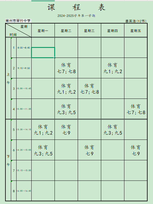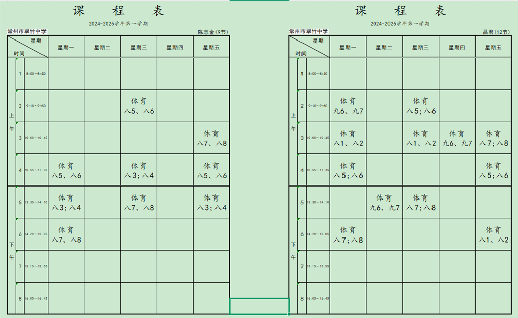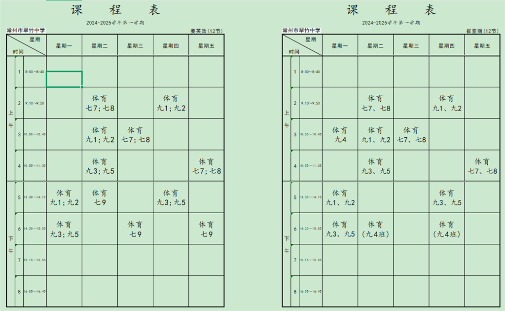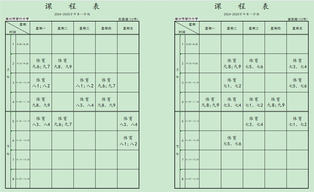 2024-2025学年第二学期体育教师课程表