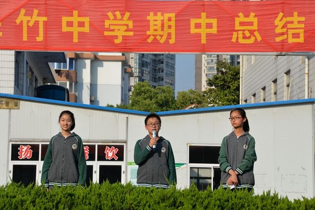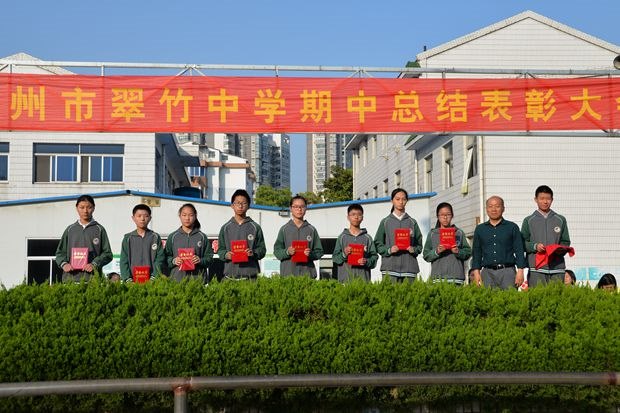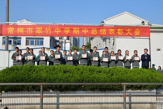 4月28日下午,常州市翠竹中学七八年级师生在操场隆重集会,举行期中总结表彰大会。短短的一节课时间,却容量丰富,形式多变,满满的正能量。 正能量一:我秀我舞台 期中表彰大会由学生全程参与,学生主持,学生展示,用活动给学生搭建属于他们的舞台,鼓励学生散发属于自己的光彩。 学生主持人借着期中这个节点,带领师生一起回顾了半学期的学习、生活,当她用优美而深情的语言描绘那一个个动人的场景的时候,一个个难忘的瞬间慢慢被放大,在场的师生都沉浸在回忆中。 表演艺术才艺和展示文学才华的两位同学各有特色。七(8)班的周诗琪,她从小就喜欢音乐,梦想着能在音乐的路上有所发展。学习古筝六年有余,已经通过十级考试,并曾在多次比赛中获得金奖。她享受学习古筝的过程,总能随着旋律的起伏感受心情的变化。音乐使她热情活泼、性格开朗,音乐也使她更加自信、乐观地面对生活中的挫折。八(4)班的汤圆,是不折不扣的翠竹小诗人,她的文字总带着淡淡的烟火与浅浅的禅意,她在纷繁的物象中寻找宁静,她始终相信,一个内心真正明净旷达的人,无论是在逆境里行走,还是乱世间徜徉,都可以让自己在失意中超脱,获得平静。这两位别具特色的小伙伴让我们看到了同龄人不一样的生活状态,她们的艺术之梦、文学之花正在兴趣的牵引下、汗水的浇灌下变得丰盈多彩。 正能量二:我有我骄傲 分享自己故事的三位同学在平凡的生活中亮出自己的精彩,他们自带“特效”,散发着少年人独特的光芒。 陶昱如,这个学习艺术的孩子,加入了学校田径队,在苏教练的精心指导下,运动成绩有了很大提高,身体素质也有了明显的提升,更重要的是,在艰苦的训练中,她明白了拼搏和坚持的真谛,这份独特的体验将陪伴她成长。 何嘉杰,这个在老师家长眼中有点调皮的孩子,对创客有着浓厚的兴趣。因为参加学校的校本课程,爱上创客,在创客的路上一路狂奔。浓厚的兴趣加上刻苦的练习,加上老师的帮助,在市青少年科技比赛中顺利突破,闯入决赛。 蔡欣宇,学校工作的骨干,这个孩子在紧张的学习之余,积极投入于班级事务和学校事务,作为班长,他帮助老师管理各项班级事务;作为自管会的一员,他认真做好自己的检查工作;作为共青团的一员,我积极响应团组织的号召;作为学生会的一员,他积极参加学校的各项活动,贡献出自己的一份力量。 每个孩子都是一朵花,或鲜艳,或清雅,或香气扑鼻,或摇曳多姿,他们在自己成长的道路上,绽放属于自己的光彩。 学习不止痛苦,成长各有风华。期中总结表彰大会不光肯定和表彰学习刻苦努力,成绩优异的同学,也看到不断进步,不放弃梦想的同学;不光鼓励学生在学业上有所突破,更鼓励学生发展兴趣,脱颖而出。(毛乐乐)