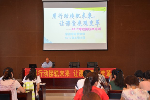 8月23日,翠竹中学全体教职工汇聚二十四中天宁分校会议室,开展为期一天的暑期校本培训。新的学年,翠竹中学迎来了老校园翻建,虹景中学过渡的特殊时期。新的环境,新的机遇,新的挑战,眼前在发展与变化,未来的美好可期。“用行动接轨未来,让课堂展现变革”为主题的暑期校本培训无疑是为每个翠中人注入了强心剂,指引了前行的方向。 本次校本培训请来了上海思来氏公司的姚伟俊老师,他就未来学校的变革为全体教职工带来了一次新理念的洗礼。 变革——用行动接轨现实 姚老师从“我们为什么要变革”这个话题开始,漫谈社会变迁变迁与新技术的引入将给教育行业带来深刻的冲击。一个问题令所有老师陷入深思:我们如何能用昨天的知识,教会今天的学生,去迎接明天的挑战?姚老师介绍道,未来教师需要具备两大能力:与技术融合的能力、研究与创新能力。具备这两大能力,让教育实现现代化! 课堂——用变革面对挑战 课堂是教学的主阵地,教育的现代化的实现在课堂上如何呈现呢?姚老师用一系列生动真实的案例展现了新技术在课堂上的应用给课堂带来的质的改变。上海六一小学的翻转课堂实验给老师安排学生自学以启示;北京十一学校历史课堂的改革则侧重于用技术提升批判性思维的培养,而这样的课堂对老师提出了更大的挑战。每位教职工认真聆听,积极思考,用摆个的课堂迎接教育现代化的挑战。 短暂而充实的一天培训结束,每个翠中人在倾听中学习,在学习中思考与质疑,在思考中前进。就在不远处,现代化的翠竹中学正在招手,每个翠中人在不断学习与提升中以崭新的姿态,满怀梦与期待,迎接翠竹中学的明天。