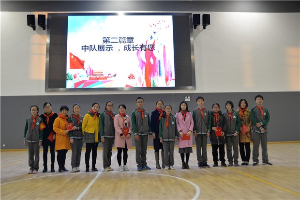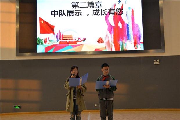 在少先队员的成长的道路上,还有一群亲切可爱、守护他们、关心他们的人,他们便是中队辅导员老师们。吴栋校长宣读各个中队的辅导员老师名单,屠国斌助理为他们颁发了聘书。随后辅导员老师为同学们送上成长寄语,激情澎湃的成长寄语,让少先队员们带着充满斗志。带着这份豪情出发,披荆斩棘,乘风破浪。少先队员们身边有优秀的同伴、敬爱的老师,前行路上,还有可亲的学长学姐。优秀团员代表八(3)班王艺璇同学与少先队员们分享自己的成长历程,赢得学弟妹们的阵阵掌声。
