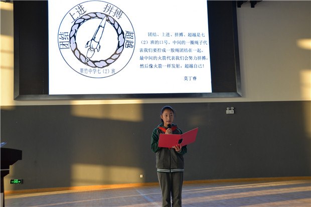 开学以来,在七年级的少先队员中已经有一批优秀的队员们,他们勤奋好学,他们积极进取,他们敢为人先,他们用优异的表现脱颖而出,成为少先队员们学习的榜样。随后,年级组长屠琍宣读校杰出少先队员、校优秀少先队员名单并为他们颁奖。优秀的个人组成优秀的集体,在这成长的新起点,七年级八个中队也带来了他们各具特色的班徽介绍。独特而有深意的图案设计,出色而寓意丰富的色彩搭配,充满昂扬斗志的口号,无不展现班集体积极上进充满正能量的风貌。