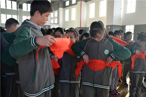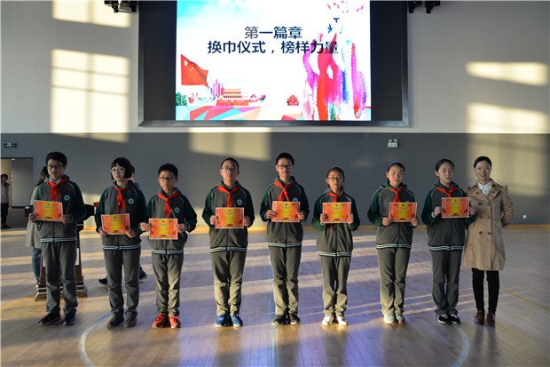 青青翠竹,领巾闪耀,火红的队旗照亮了我们的过去;十月金秋,硕果累累,鲜亮的火炬指引我们不懈的努力。最后,在校少先队大队辅导员柏佩婷老师带领大家下一起重温入队誓言。“准备着,为共产主义事业而奋斗!时刻准备着!”斗志昂扬的呼号声回荡在体育馆上空。换巾仪式落下帷幕,胸前的大领巾飞扬,心中蓄积的满满拔节向上的力量。(柏佩婷)