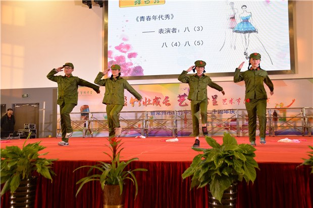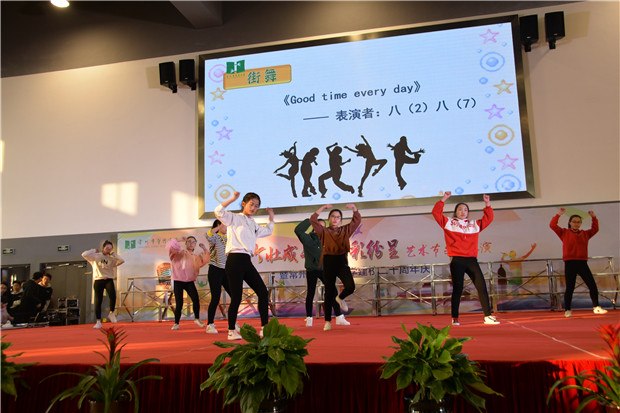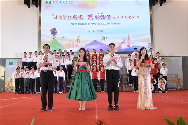 冷冬寒风凛冽,翠竹中学学子们的热情驱散了寒冷。12月26日下午,翠竹中学全体师生齐聚过渡校区体育馆,观看“竹壮成长,艺彩纷呈”艺术节文艺汇演暨二十周年校庆晚会。 恰逢学校二十周年校庆,当艺术节撞上校庆,会擦出怎样的火花呢? 我拿青春献给您 翠中二十载,二十年风雨,二十年成长;二十年辛苦播种,化作一路芬芳,化作最美翠中。最美翠中有一群最美的人,他们把最美的青春,最美的时光献给了学校。在学校二十岁生日之际,老师们也带来了朗诵,将最美的诗歌献给她!“让我怎样感谢你,当我走向你的时候,我原想收获一缕春风,你却给了我整个春天……”道不尽的感谢,说不完的爱意,就让诗歌带给学校最美的祝福。 我拿歌舞献给您 炫酷动感的街舞,热情奔放的新疆舞,活力四射的集体舞……这是一个舞蹈的世界,各色的水袖飘动着,给全体师生带来视觉上的享受!舞的是青春,舞的是活力,舞的是热情,舞的是喜悦!激昂的大合唱《我们是中国少年》传达了少年强则国强的心声,青春活力的小合唱《I just wanna run》展现了翠中学子为未来努力前行的坚定决心,情感真挚的大合唱《一千零一个愿望》更是传达了学子们对母校的无限祝福……或是激情四射或是柔婉动听歌声回荡在体育馆的上空,久久萦绕。 我拿“心艺”献给您 艺术节从11月份就拉开了帷幕,翠中学子们灵巧的双手为学校设计了吉祥物,描摹了记忆中的老校园,绘出崭新的过渡校区,刻画了老师辛勤工作的身影,挥毫泼墨一抒最真的祝愿……彩笔纵横间表现了对学校的爱意与深深的祝福! 在晚会上,八年级同学的诗音画《你好,翠中》将所有人的记忆拉回到了正在重建的翠中老校园。还是在那樱花树下,还是在小池塘旁,还是那个幽长的连廊,同学们轻声诉说着快乐美好的校园生活,诉说着对学校最深的祝福。 我拿“创艺”献给您 翠中二十载,我们从相片里看到时光划过的痕迹。八年级同学脑洞大开,用服装的变迁来展现时代的特色。从古时的汉服到近代旗袍中山装,再到上世纪的军装新时代的潮服,搭配逗趣的音乐,精彩的表演,让台下的观众笑声连连,捧腹不已心,掀起了演出的高潮。时光匆匆,蜘蛛侠也来到了舞台上,小品《时间去哪了》引得同学们不住的拍手称赞。 “竹壮成长,艺彩纷呈”艺术节文艺汇演已连续举办三届!这是一个学生们大显身手的舞台,主持、唱歌、跳舞、绘画、乐器……个个都秀出自己的才艺!这是一个彰显青春活力的舞台,无论是活力四射的歌舞,还是创意十足的小品年代秀,处处都展现了翠中学子们的无限创意!这是一个饱含真情的舞台,当艺术节遇上了20周年校庆,学生用青春朝气向学校送上祝福,老师们用默默付出对学校道一声感谢!最真、最美的祝福送给您——我们的翠竹中学!