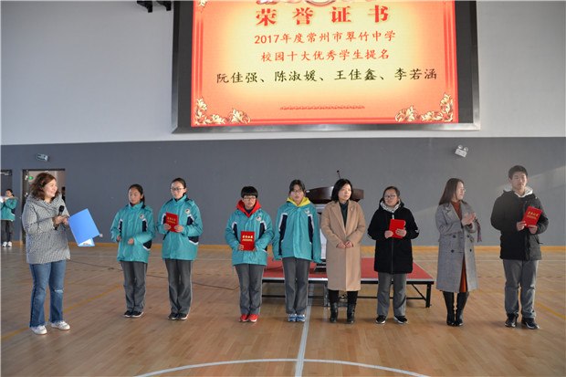 春风柔暖,翠鸟啁啾,万物复始,沉寂了一个寒假的翠竹中学校园又恢复了生机!青春的奋斗者们,满怀期待,满怀豪情,在醉人的春天里重新出发。 2月26日,清晨的霞光唤醒每个翠中人,师生齐聚体育馆参加2017--2018学年第二学期开学典礼,共同迎接新一轮的竞争与挑战。 奋斗者的春天——甜蜜与爱意 “学校给我们发礼品啦!”“好意外呀!”……晨曦微光中兴奋的谈论声里惊喜与感动是隐藏不了的!学校在开学的第一天为每位同学准备了新年礼物——步步糕和棒棒糖。一进校门,值班的老师就将甜蜜的食物塞到学生们的手里。满是新年的祝福,满是新年的期许——祝愿每一位翠中学子新的一年拔节成长,生活甜蜜,身体棒棒!这是作为成长的同行者们为孩子们带来的春天里第一缕暖阳!    奋斗者的集体——团结与温暖 开学典礼在庄严的国歌声中正式开启。回首2017,无数美好记忆涌上心头,缤纷多彩的科技节,趣味盎然的运动会,精彩纷呈的艺术晚会。回首2017,许多优秀的集体,勤奋上进、锐意进取,底蕴深厚,不断创新。这是一个个充满热情的集体,这是一个个奋斗的集体!挥洒了辛勤的汗水,换来了丰硕的收获,翠竹中学校党支部周书记、路书记,翠竹中学吴校长、屠校助为获得“文明班级”及“特色班级”的集体颁奖。优秀的集体用表现和实力成为了其他班级的典范,奋斗者的集体温暖与光芒常在!    奋斗者的假期——充实与成长 这个假期,寒冷中却充满温暖。这个假期,闲适中不忘初心。寒风中奔波忙碌的身影,是奋斗在爱心路上的志愿者们。冬日下坚毅开朗的脸庞,是奋斗在成长路上的学生干部们。灯光里认真专注的神情,是奋斗在学习路上的伙伴们。缤纷寒假,五彩生活,奋斗的假期最充实。来自八2班的徐佳乐同学分享了自己的假期生活,磨砺斗志的冬令营,有序的时间安排,几本有趣经典的书籍,她的假期是一个因奋斗而充实美好的假期。奋斗者的假期是充实自己的时光,是蓄势的契机!  奋斗者的青春——无与伦比的美丽 美丽的校园里,有这样一群群奋勇拼搏,凭借不懈努力而在各方面脱颖而出的青春榜样。他们真诚,他们努力,他们优秀,他们播撒汗水灌溉成长, 铸就青春的光芒!上学期休业式上“校园十大优秀学生”候选人们展现了自己的风采,综合全校师生的纸质选票和学校微信平台投票结果,优胜者携同自己特邀颁奖嘉宾来到开学典礼现场。他们精心挑选自己的颁奖嘉宾,有循循善诱的老师,有亲密无间的伙伴,有真情陪伴的家长。九(2)班陈栩稼同学作为代表讲述了自己心声,她说:“优秀是一种荣誉,优秀更是一份责任!”青青校园中正是有这样一群奋斗者,才显现出青春无与伦比的美丽!     生命因奋斗而精彩,青春因奋斗而美丽,翠中因奋斗而辉煌。奋斗者是精神最为富足的人,也是最懂得幸福、最享受幸福的人。新学期,愿每个翠中人成为新时代的奋斗者!撸起袖子加油干!只问自由,只问盛放,只问深情,只问初心,只问勇敢,无问西东!