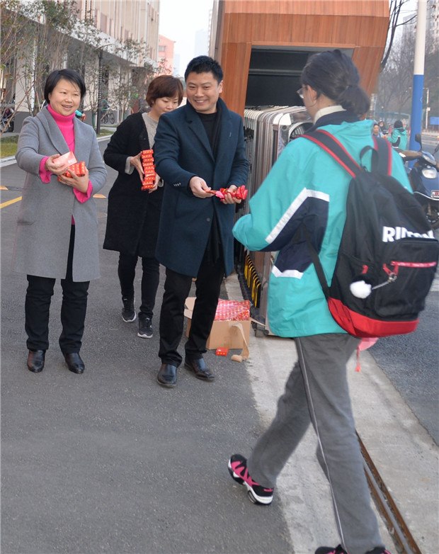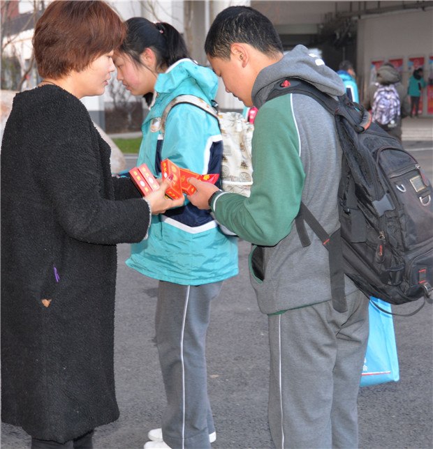 26日,一踏进翠竹中学校门,孩子们都领到了开学红包——红色包装的棒棒糖和步步糕。含了棒棒糖,身体棒棒哒;吃了步步糕,学业步步高。