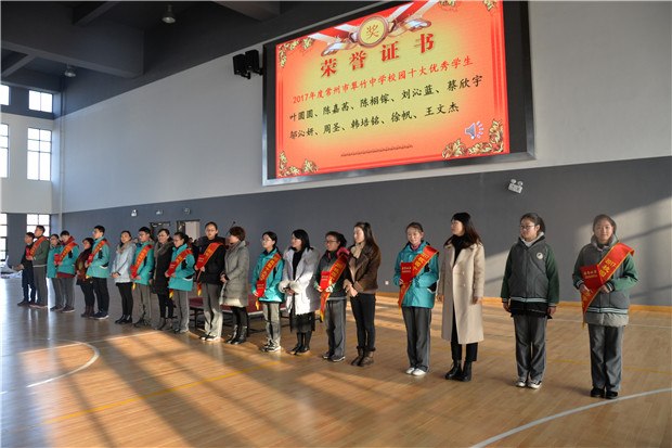 226日,常州市翠竹中学在虹景中学过渡校区的体育馆召开新学期开学典礼,“校园十大优秀学生”的评选活动在这里落幕颁奖。