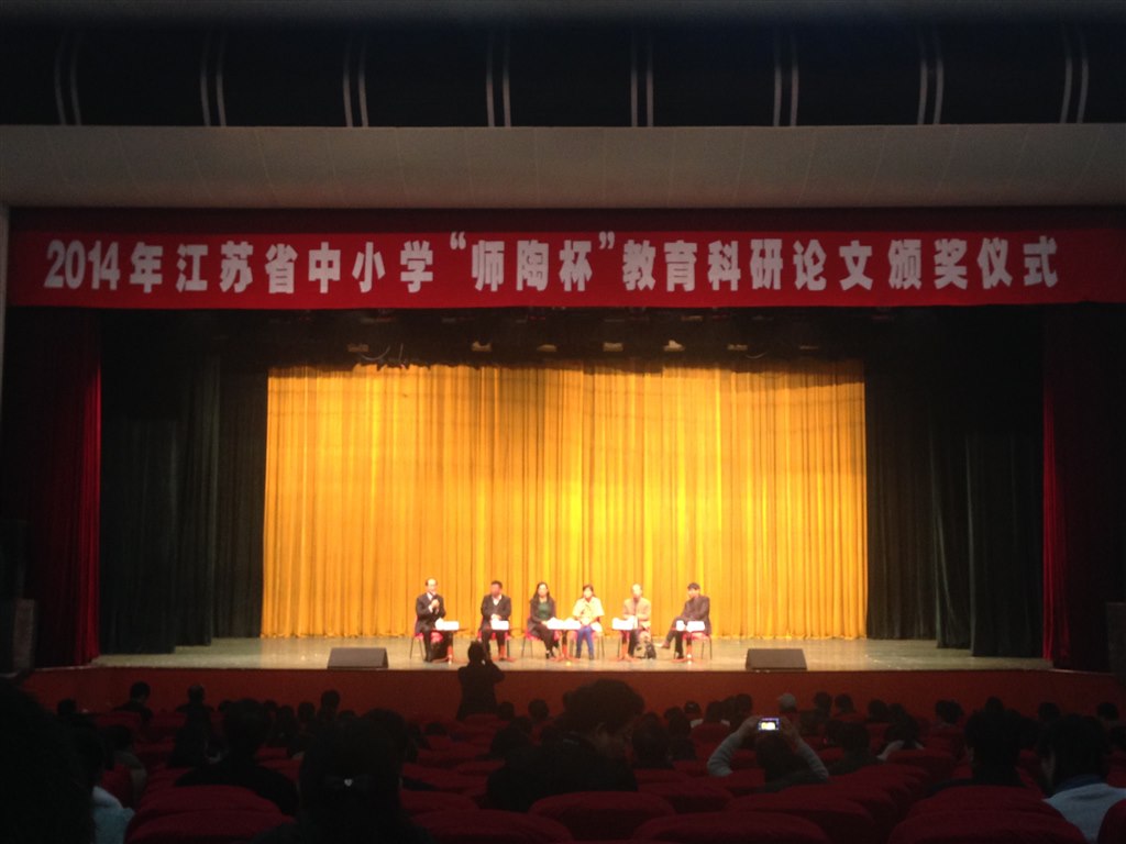 太湖之畔,胜友如云,千里逢迎,高朋满座。2014年11月17日,来自江苏省 各大城市的教师代表们沐浴着初冬的朝阳,来到美丽的无锡,参加第15届师陶杯教科研论文颁奖活动,本次活动的主题是“教育科研推动课堂变革”。