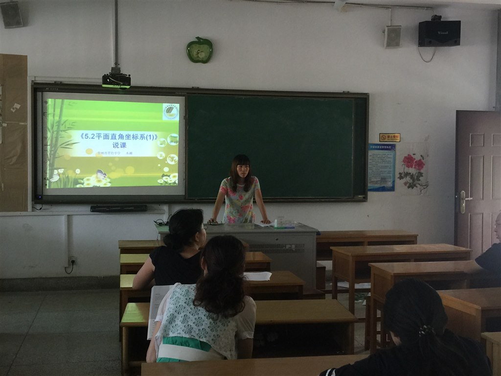 9月10日,数学教研组举行教研活动,本次活动以水湘老师的一节说课展开。水湘老师向大家进行15分钟的说课,题目为《平面直角坐标系(1)》,她从教材分析、教法学法、教学过程个三个方面对本节课的进行了说课。课后数学组老师结合这节说课,就如何说课、说课注意什么等方面进行了研讨,大家收获颇多。 9月15日,水湘老师又向大家上了《平面直角坐标系(1)》这节课,三位校领导也参与了听课、评课。数学组结合这节课,就学生的自主学习、合作学习;教材的灵活使用;怎样让教学设计走近学生、符合学生已有认知等方面进行了研讨。