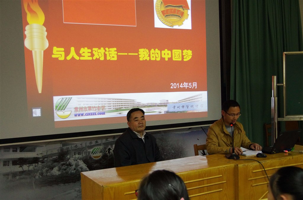 2014年5月4日,劳动节小长假后的上班第一天,也是中国的青年节。为了让这个节日更有意义,下午第三节课翠竹中学第33届少年团校的全体学员与部分学生团员代表共聚一堂,聆听我校退休的老党员、翠竹中学原党支部蒋贵琦书记,给同学们上的一节主题为“与人生对话——我的中国梦”的主题团课。