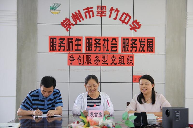 9月16日,翠竹中学党支部围绕“践行党的群众路线,争创服务型党组织”这个主题召开了全体党员会议,会议由校党支部副书记路云主持。全体教工党员出席了会议。 路书记从“我们的认识”,“我们的目标”,“我们的行动”,“我们的思考”四个方面阐述了建设服务型党组织的重要意义,并对服务型党组织的建设进行了阶段性总结以及对今后的工作作出了重要部署。她向全体党员阐述了服务型党组织建设的重要性,强调它是处理党与人民鱼水关系,舟水关系的重要途径。提出了党员教师应该做到四个“进一步”:进一步提升服务意识,进一步拓展服务领域,进一步强化服务功能和进一步优化服务水平。而作为教工党员,更要在工作中找准位置,充分发挥自身作用,切实作出贡献。要思考,如何进一步提升岗位创优能力。希望全体党员教工亮出党员身份,增强服务意识;积极参加课堂教学活动,履行职责义务;帮助学困生,帮助新教师,带领组织成员积极上进;坚持义工服务,提升教师影响力。 会上路书记和大家一起回顾欣赏了暑假党员们积极行动、服务社会的活动视频,我们看到了学校党员教师在各个服务行业的活跃声影:老师们走出校园改头换面成了“新华书店里的梦想导师”,老师们带着收集的厚重包裹成了“义卖摆摊贩”,老师们还能穿上铁路制服充当了一回“高铁服务员”。路书记对已经参与活动的党员教师进行了点名表扬,并鼓励更多的党员教师加入进来,奉献自己的光和热。 会上最让人感动,最受启发的是朱荷芬,康爱琴两位党员教师的发言。两位老师和大家分享了她们参与义工活动的感受和体会。朱荷芬老师连续参加了两次优秀教师导学活动,两次获导学先进教师,朱老师的导学教育也是一次教育方法的探究,从最初的“小班练批讲”的一锅式,到后来采取的“提问答疑”“基础练习”“提高练习”多样化的个性化教学形式,我们可以看出朱老师的真心用心。朱老师说到,虽然采取后一种方式要麻烦许多,花费许多时间,但是看到教学效果明显有了好转,心里感到十分欣慰。朱老师的奉献精神展现了形象,还提升了心灵。康爱琴老师的义工活动不仅影响了自己,还带动了一批有爱心的学生和学生家长,义工队伍渐进性的壮大起来。从最初只是带孩子完成任务,到自己加入,最后还鼓励了班级学生和家长一起参与其中。她和她们班的同学一起参与义卖活动,带领班级学生和家长参加义演,周末利用休息时间在“一 加”爱心社辅导外来务工人员孩子的作业等等,这一做就坚持了一年多。回忆起过往活动的点滴,康老师语音哽咽,她感慨:源自内心的去帮助人获得的发言满足感只有自己可以体会,别人无法感知。康老师的讲话也感染了与会的每一位同志。正如路书记说的,活动不在于做的多大,不在于做了几次,而是在于将这样的小事坚持下去,义工活动对学生来说是很好的教育资源,是一次文化教育的盛宴。 会上还表彰了过去一年表现突出的优秀党员。最后,吴校长做了总结发言。他表示,服务型党组织的创建需要靠每一个党员去实践,关键是要“做”。鼓励党员多看多想立足岗位履行职责,提升创优能力。(王萍)