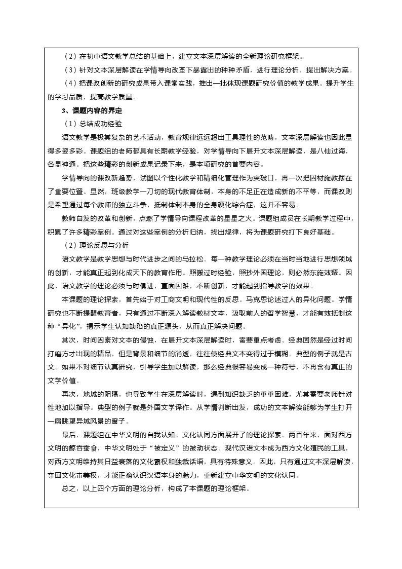 《语文文本深层解读与学情导向之间的矛盾研究》开题论证书